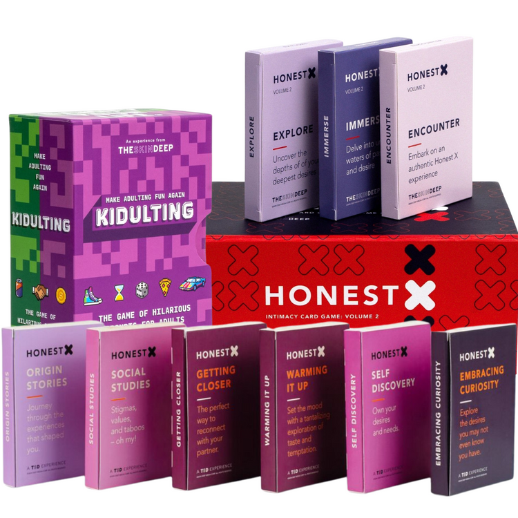 Why This Bundle Is Special: Unlike typical adult card games that rely on shock value, Honest X creates a judgment-free space for exploring real intimacy. Combined with Kidulting's pure, unadulterated fun, you get the perfect balance of deep connection and lighthearted play.