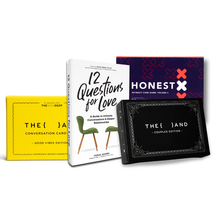 Looking to deepen your romantic bond through both heartfelt conversations and joyful moments of connection? {THE AND} Couples Edition Valentine's Bundle combines our most beloved tools for nurturing an exceptional relationship—one built on emotional intimacy, playful discovery, and the kind of vulnerability that brings partners closer together.
