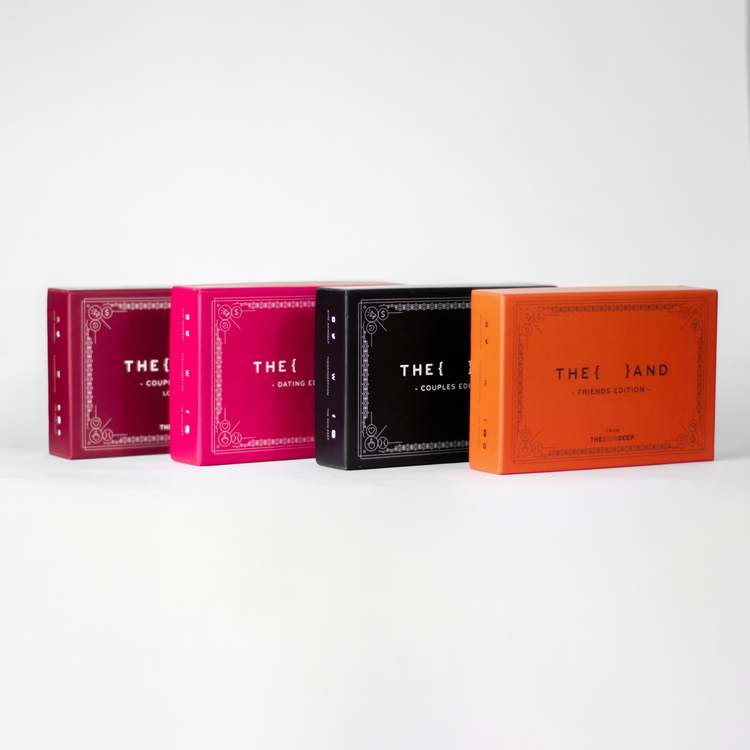 Our bundle includes four of our most popular card games - {THE AND} Dating Edition, Couples Edition, Long-Term Couples Edition, and Friends Edition - each carefully crafted to help you discover authentic and meaningful conversations at every stage of your relationship.