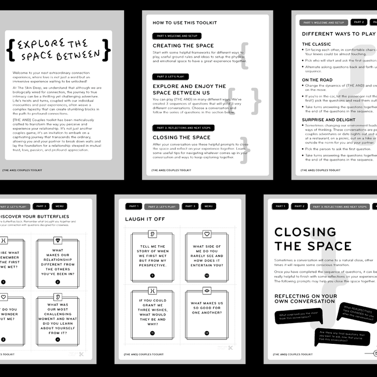 Experience new and meaningful conversations with your friends and give them fun and exciting moments with the Friendship Essentials Bundle. This popular bundle combines our community favorite {THE AND} Couples Edition card deck, our all new Couples Digital Toolkit, and our unique love themed postcards to create memorable moments throughout your relationship. Whether your looking to experience a new kind of game night or your looking for a fun way to show you care, this is the perfect bundle for any couple.