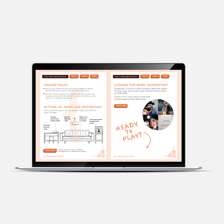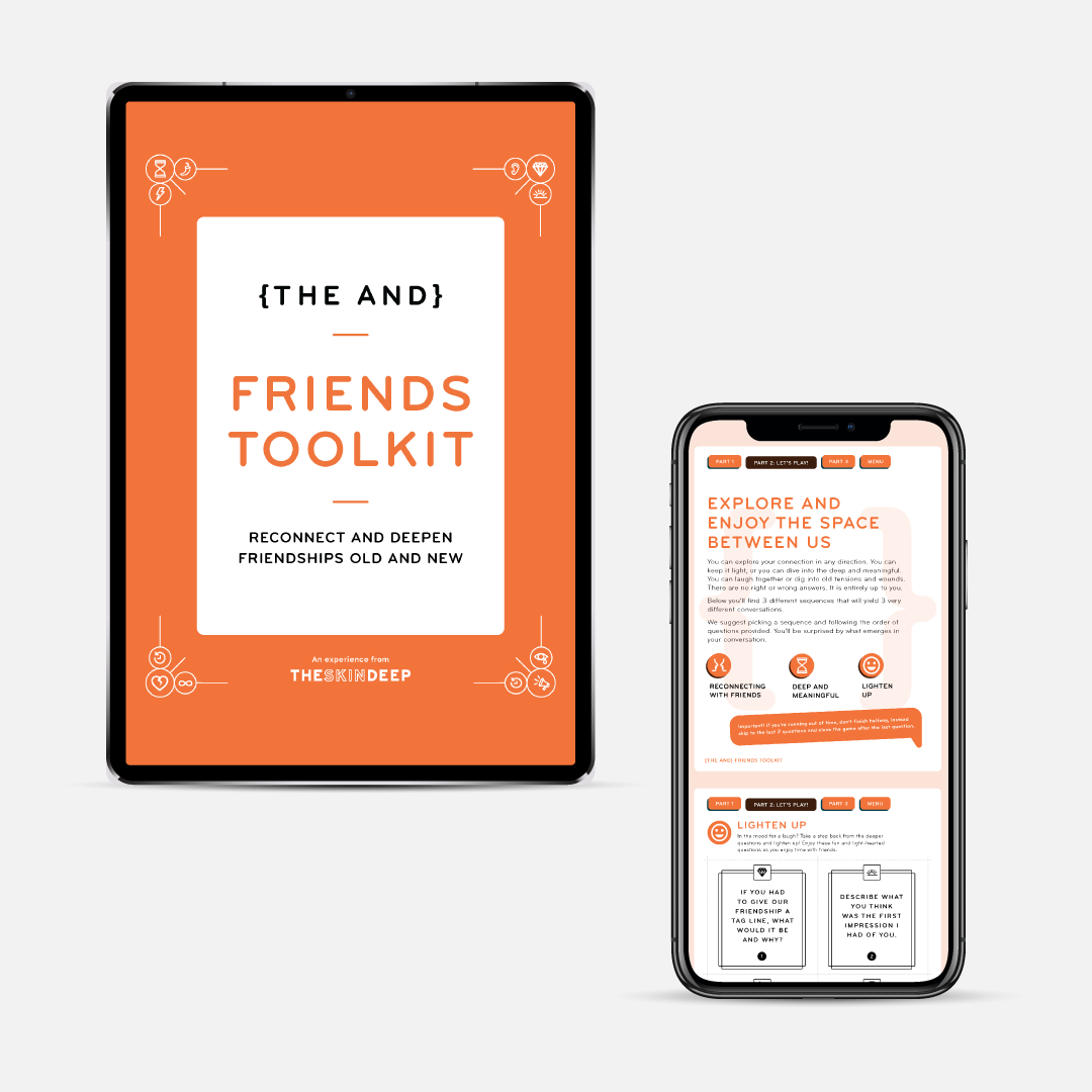 {THE AND} Family and Friends Toolkits were carefully crafted and packed with prompts, questions, and tools to help you and some of the most important people in your life build a strong foundation of connection, honesty, and appreciation.