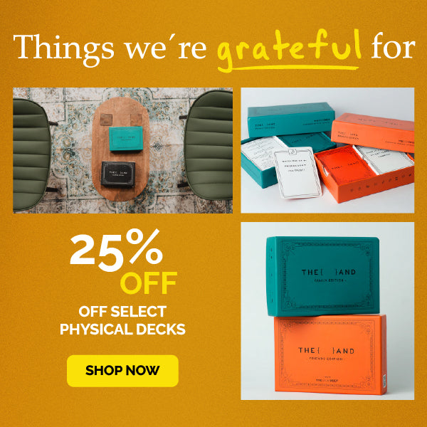 The And Good Vibes Conversation Cards are a fantastic conversation starter / ice breaker, and all around great way to get to know people. This is my first deck of cards from The And, despite me having my eyes on various decks of cards of theirs for some time. I am a huge fan of conversation / question card games, and always walk away feeling like I know someone a little bit more than I did before. The questions are really interesting, deep, and offer a wide variety of subjects. So often these kinds of games fall on easy-to-find generic questions, whereas The And's questions all have enough interesting context to cause players to stop and think for a bit before answering. I can't recommend The And's Good Vibes Edition deck enough!